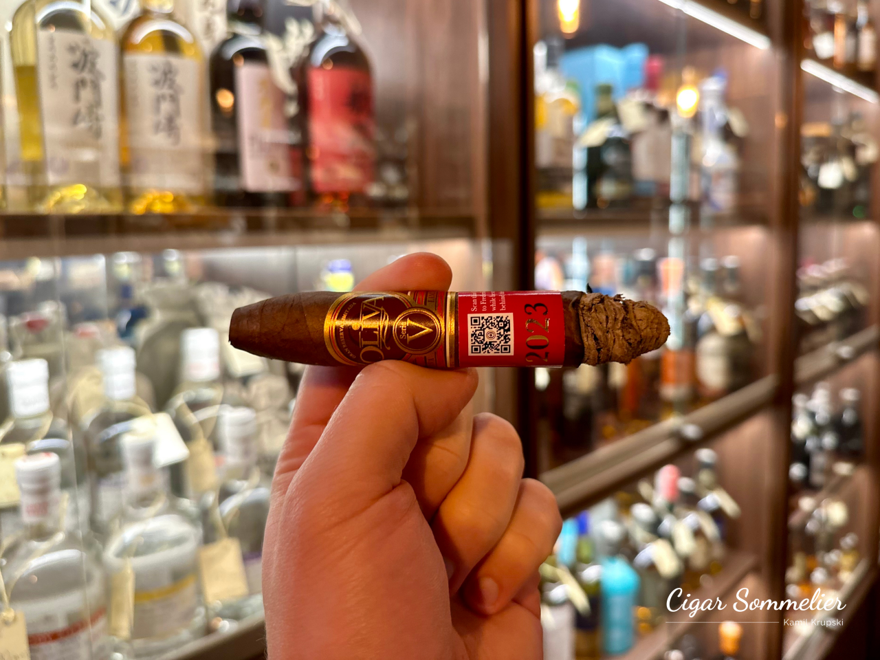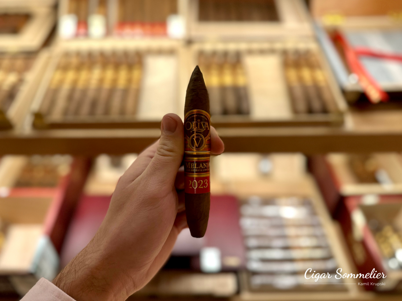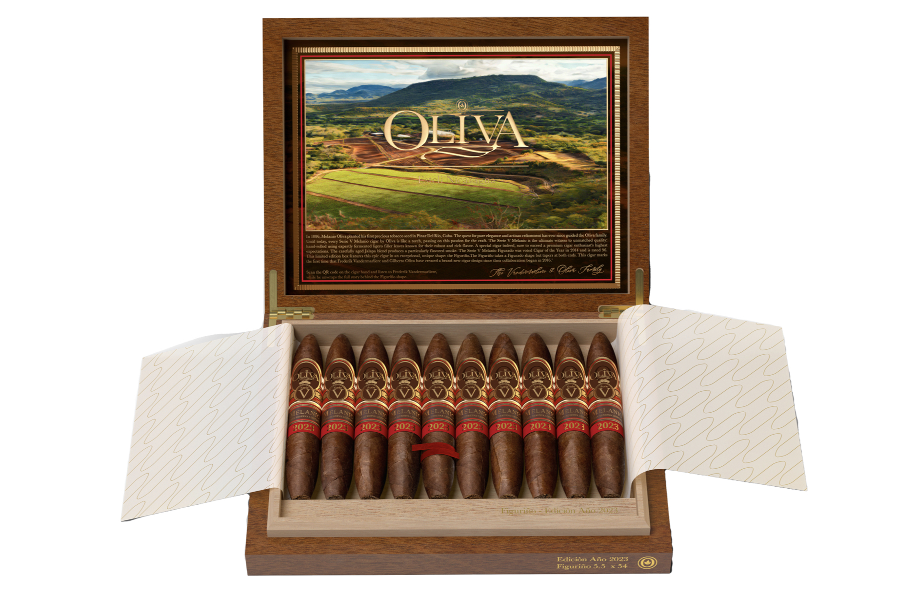 Edycja Limitowana Serie V Melanio na 2023 rok została przygotowana w wyjątkowym formacie Figuriño. Jest to doble figurado o wymiarach R54 x 139mm.